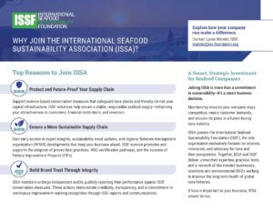 “Why Join the International Seafood Sustainability Association?” (PDF) summarizes the top business reasons seafood companies should consider ISSA membership — from protecting supply chains to streamlining costs and efforts. Membership benefits also are outlined in the table below.